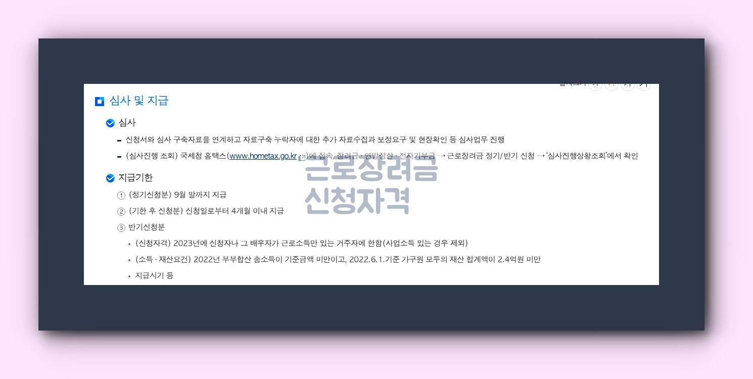 근로장려금 신청 일정 및 지급 정보